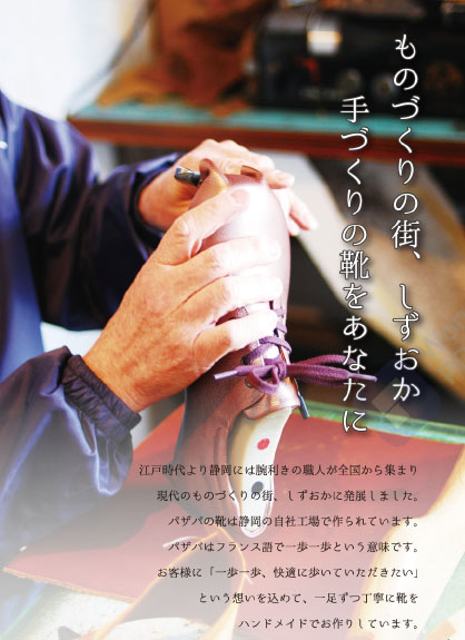 パザパの靴は静岡の自社工場で1足ずつ丁寧にハンドメイドでお作りしています。