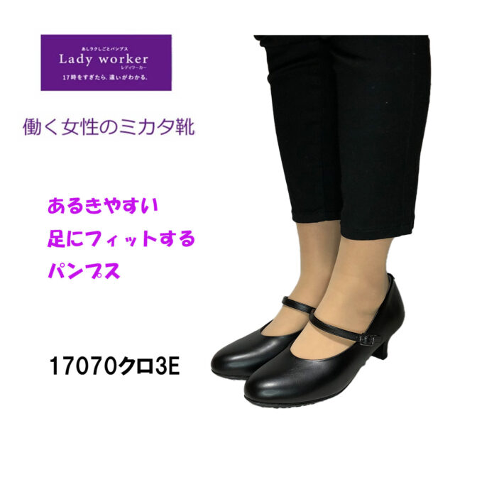 パンプス 黒 リクルート アシックス レディワーカー 17070 フォーマル