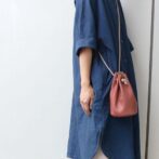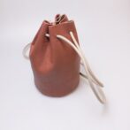コロンとしたフォルムが可愛らしい巾着バッグ。