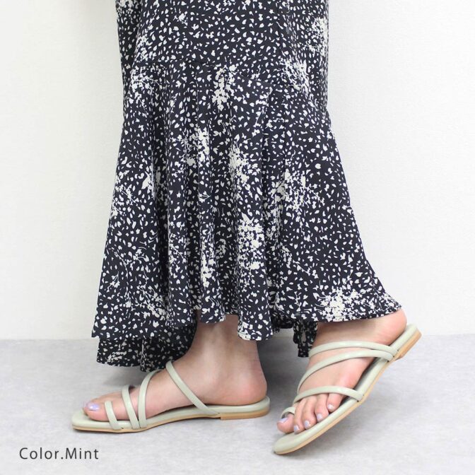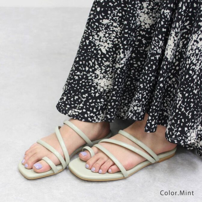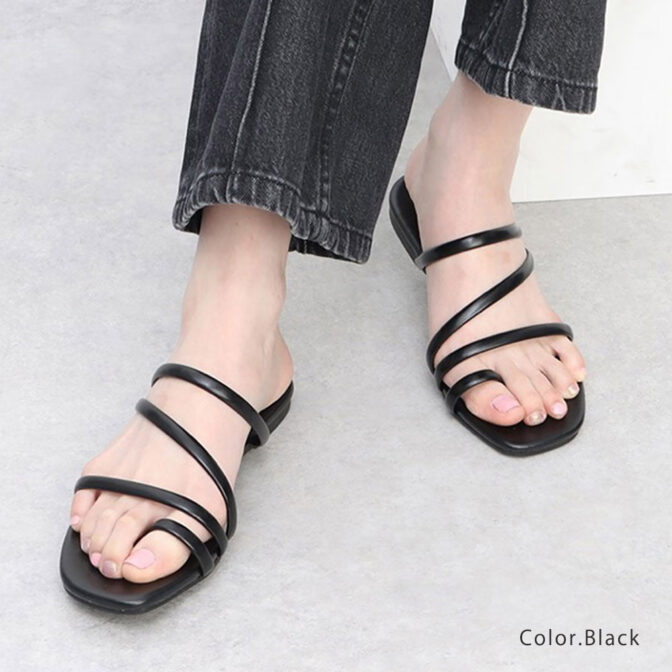 ビーチサンダルのような感覚で楽に履けるフラットストラップサンダルです。