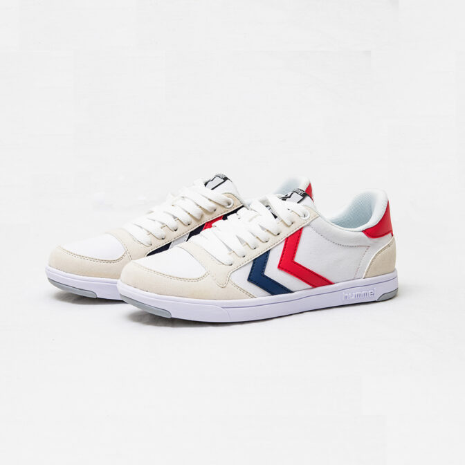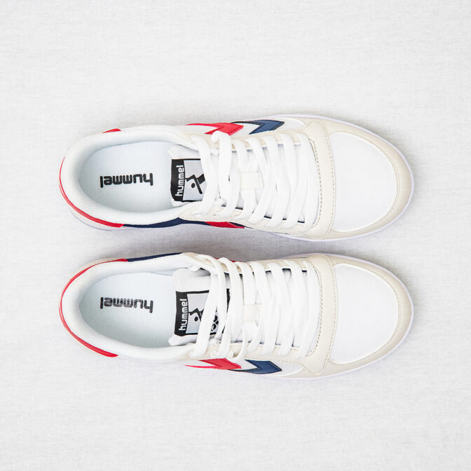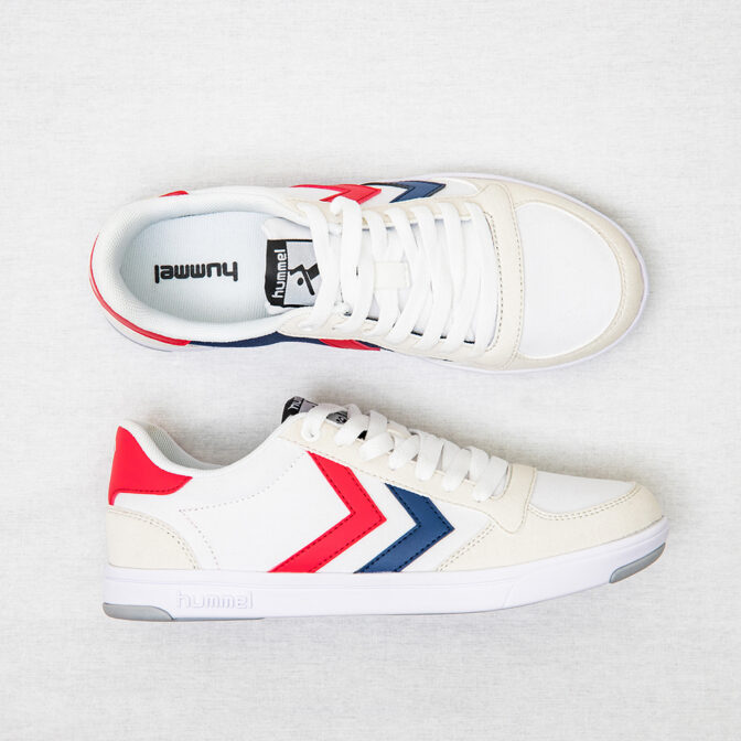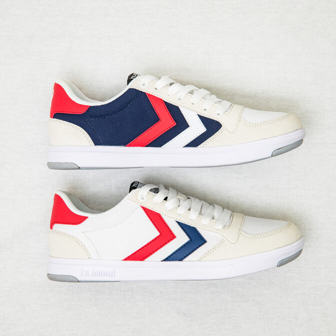 ヒュンメル定番のSTADIL(スタディール)をベースに、アッパーの左右でカラーが異なるカラーで大胆にアレンジしたモデル。
