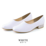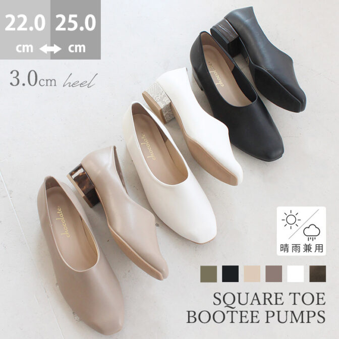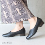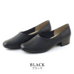 日本製ローヒール スクエアトゥ パンプス 幅広 柔らか 晴雨兼用 楽ちん