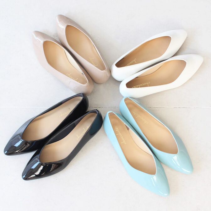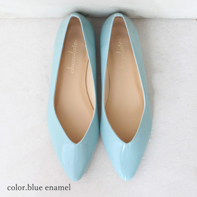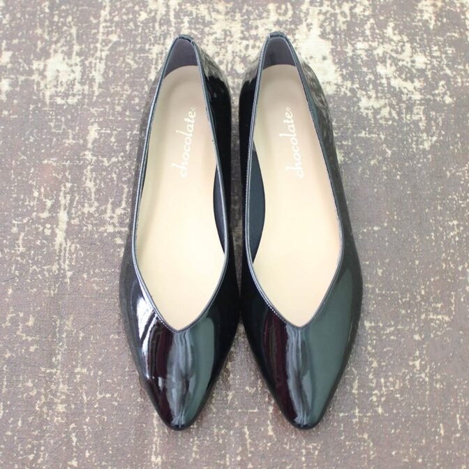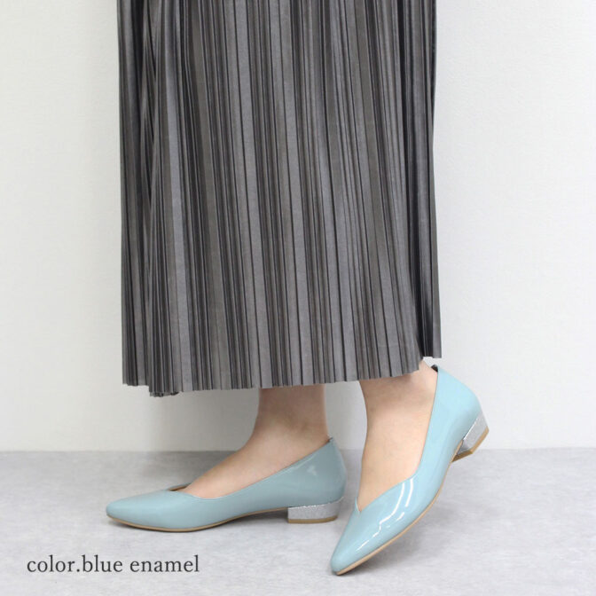 日本製 エナメル パンプス レイン ポインテッド Vカット 2.5cmヒール