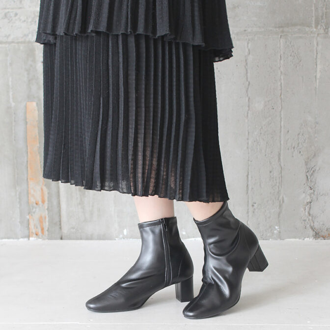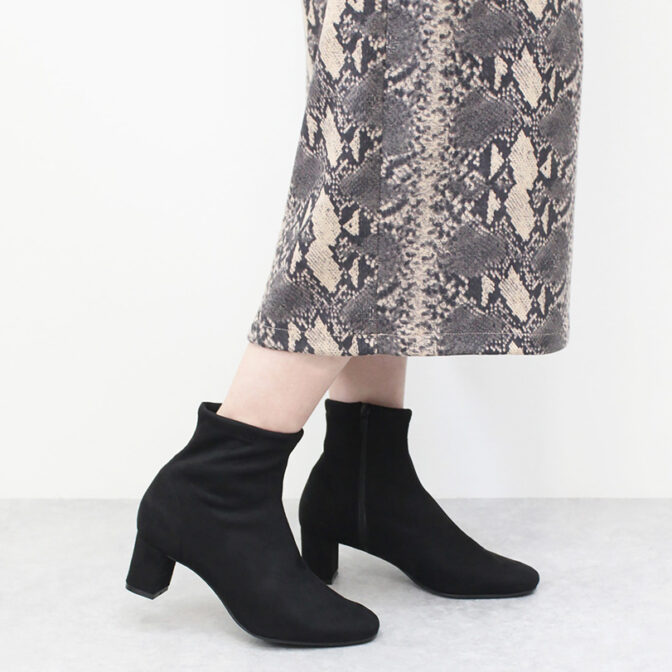 日本製 ストレッチ スクエア ショートブーツ 柔らか 幅広 痛くない 歩きやすい