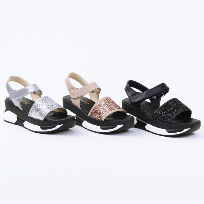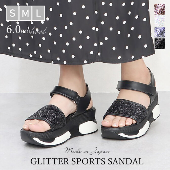 日本製 スポーツサンダル スポサン カジュアル グリッター 厚底 6cmヒール