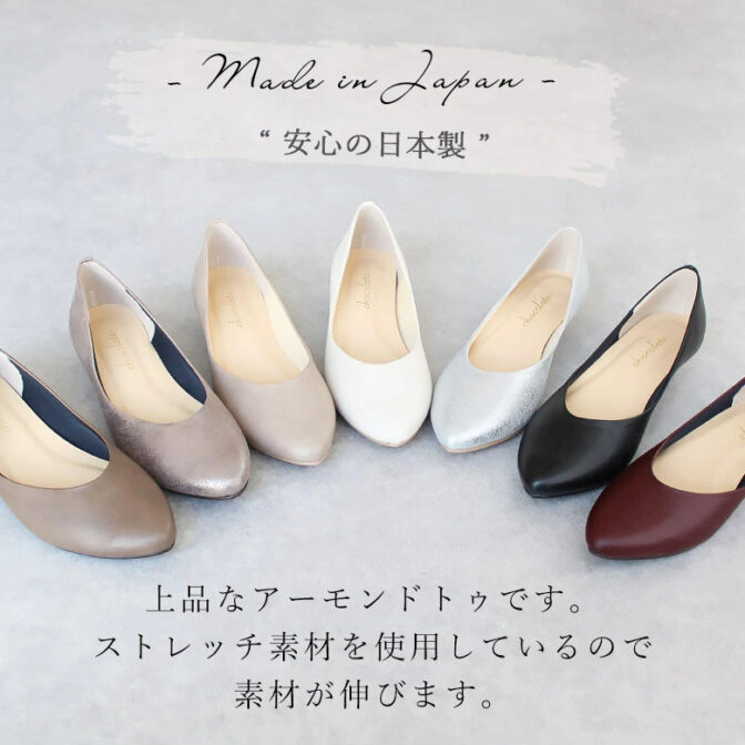 日本製のシンプルなアーモンドトゥのパンプスです。