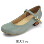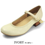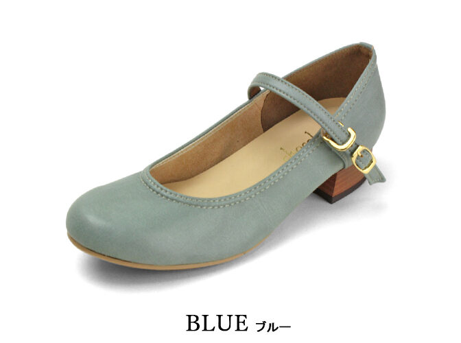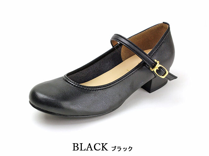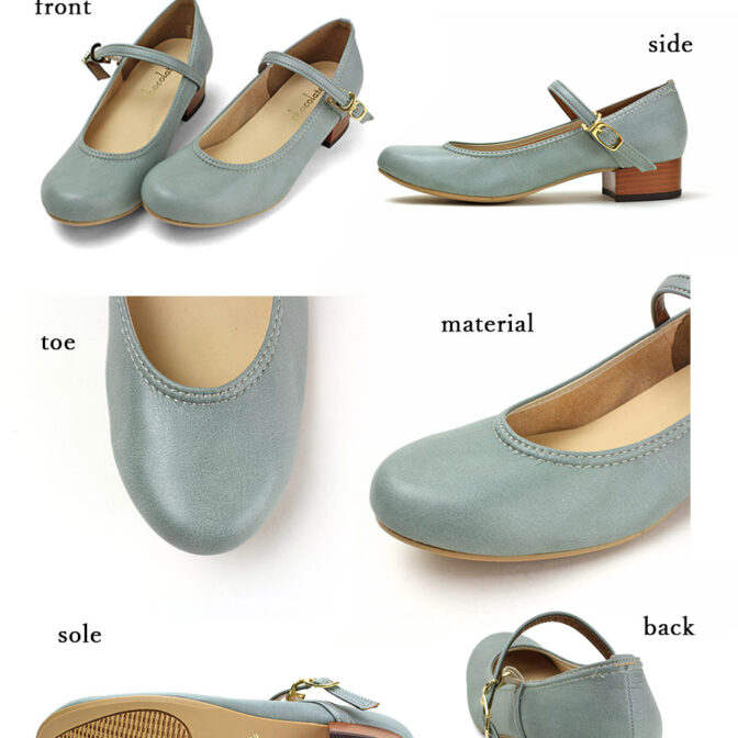 日本製のストラップ付き太ヒールのラウンドパンプスです。