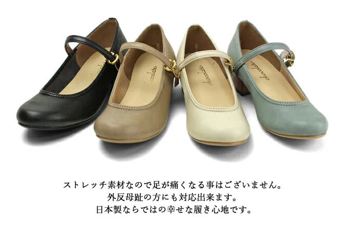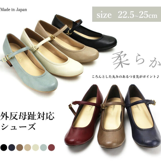日本製 パンプス ラウンドトゥ ストラップ 柔らかい 外反母趾対応 足に良い靴