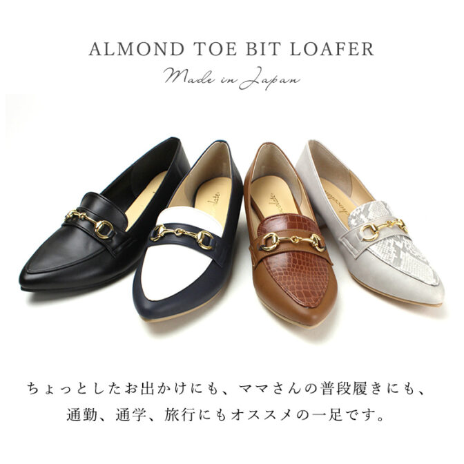 日本製 ビットローファー アーモンドトゥ263 柔らか 幅広 痛くない 歩きやすい