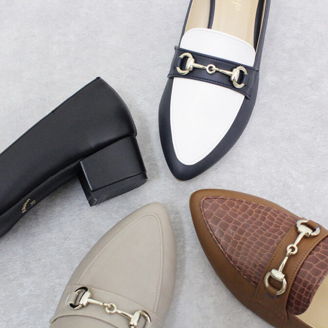 大人気のアーモンドトゥのビットローファーです。