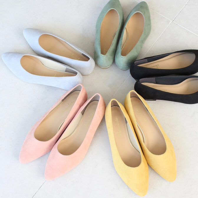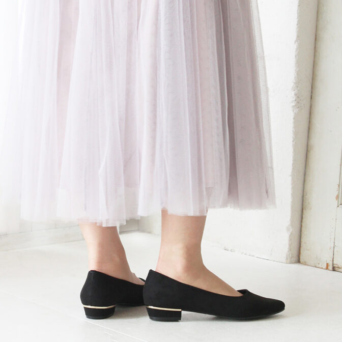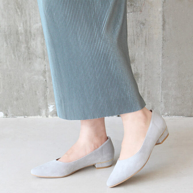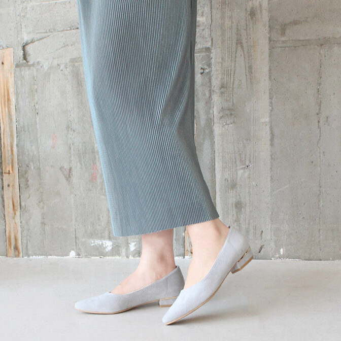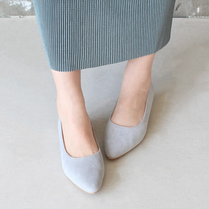 日本製 ポインテッド スエード パンプス ローヒール 歩きやすい